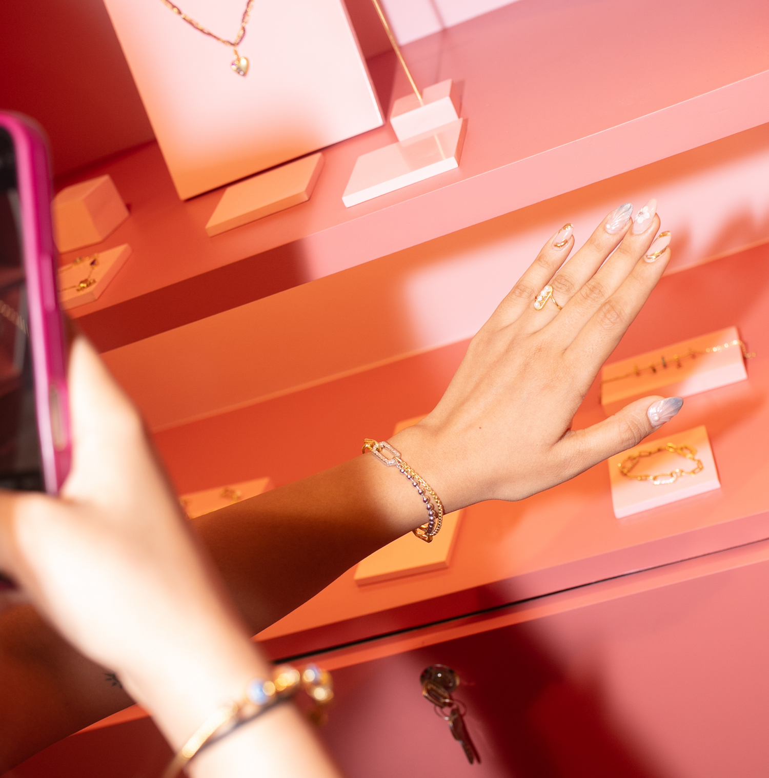 Discover our jewellery up close — shop instantly, personalise your pieces, and enjoy expert styling with our team.