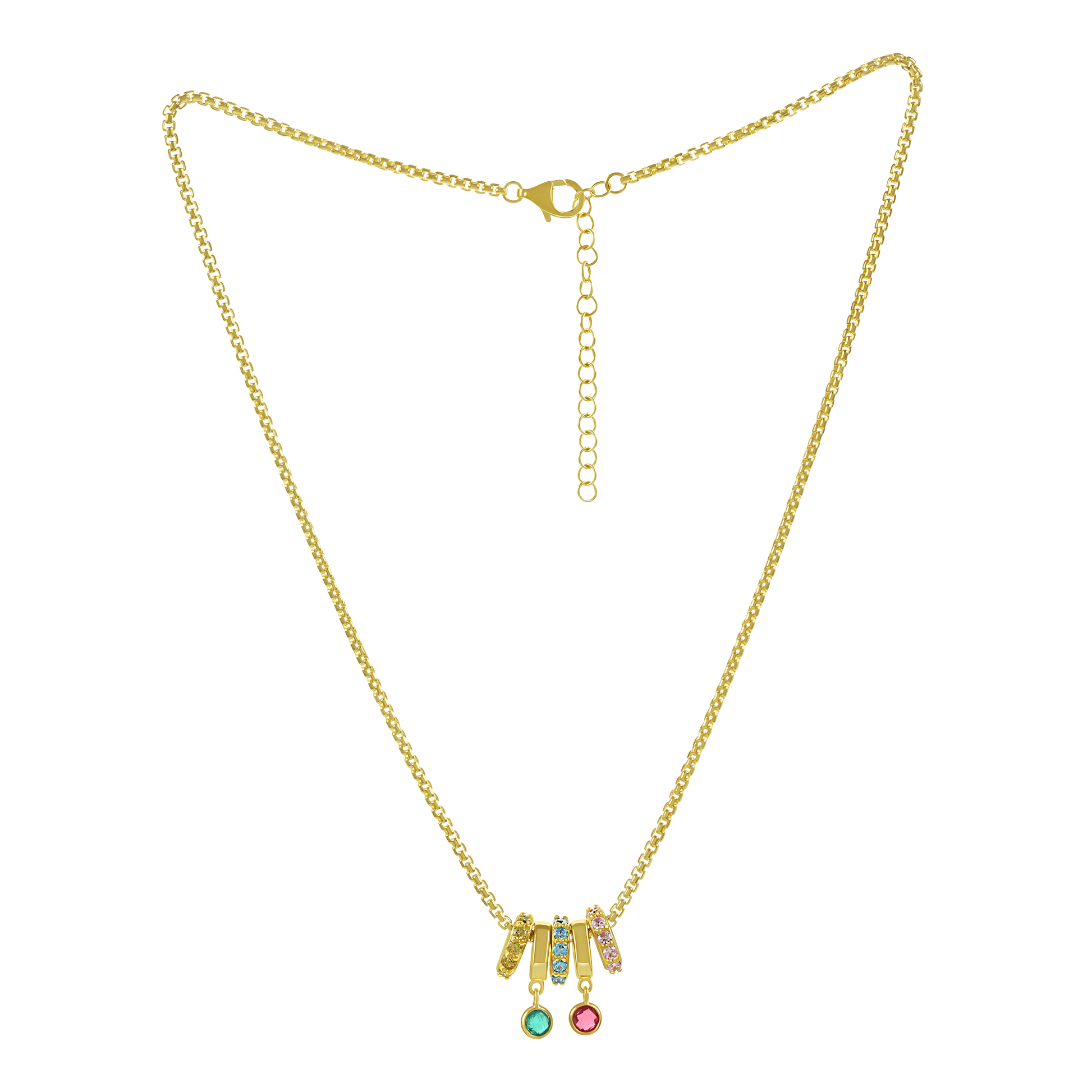 The Mother-Daughter Necklace celebrates the unbreakable bond between two hearts. Crafted in 925 sterling silver with gold plating and an anti-tarnish finish, this bracelet features slider-style movable elements studded with CZ stones — symbolizing shared memories and individuality. Its adjustable fit ensures all-day comfort and versatility.