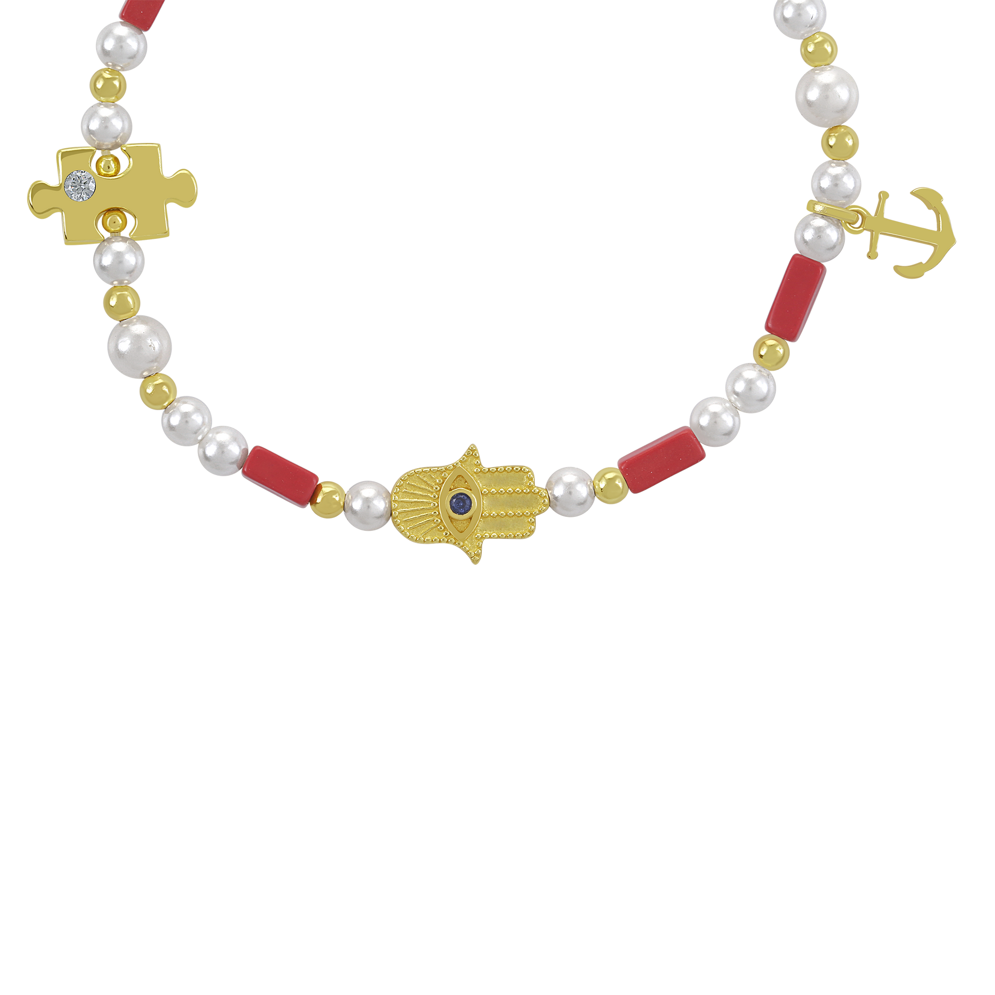 Stone Detail: White Shell Pearl, Pressed Coral, White CZ