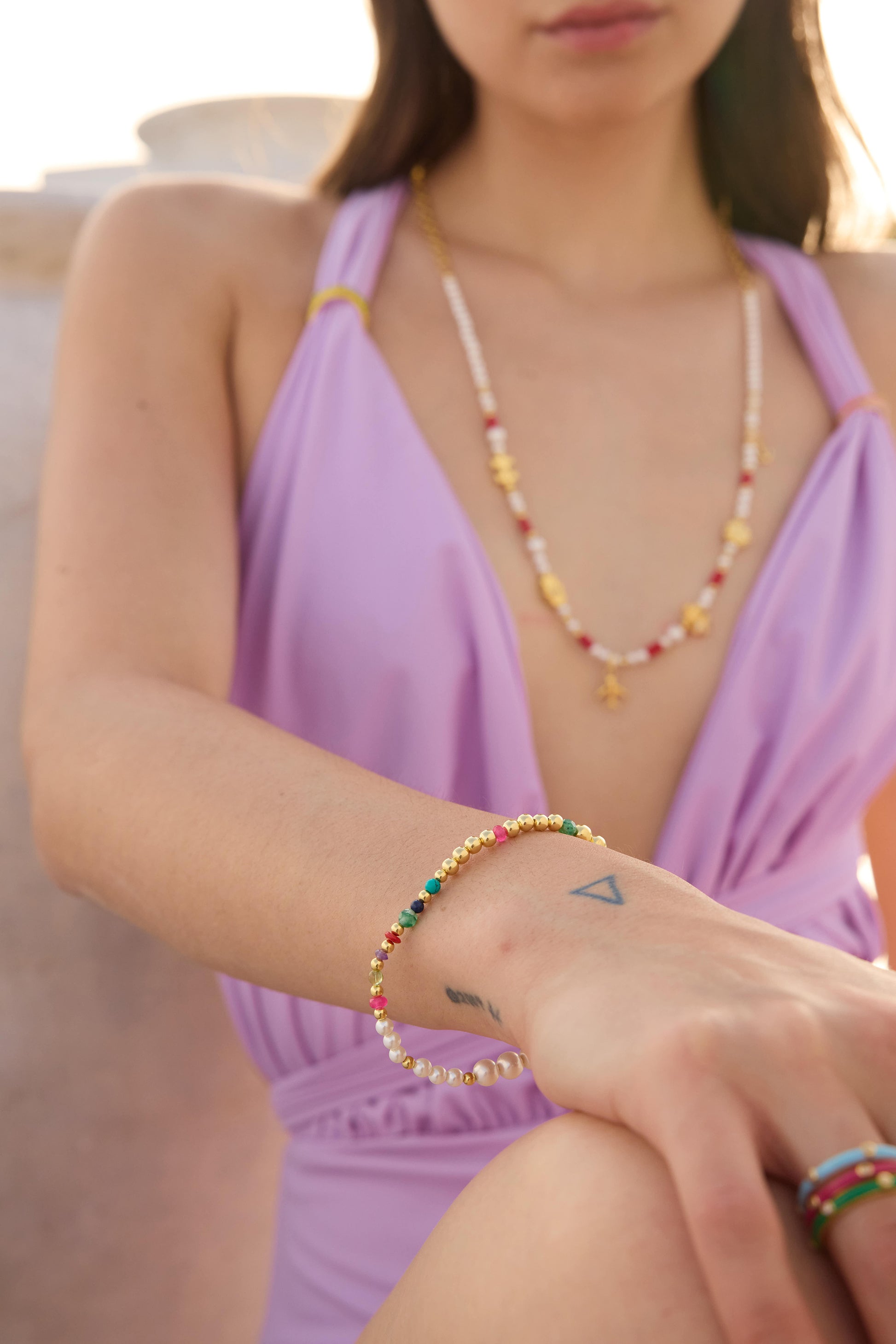 Style Tip: Pair with minimal rings or layered bracelets to enhance the multicolour charm