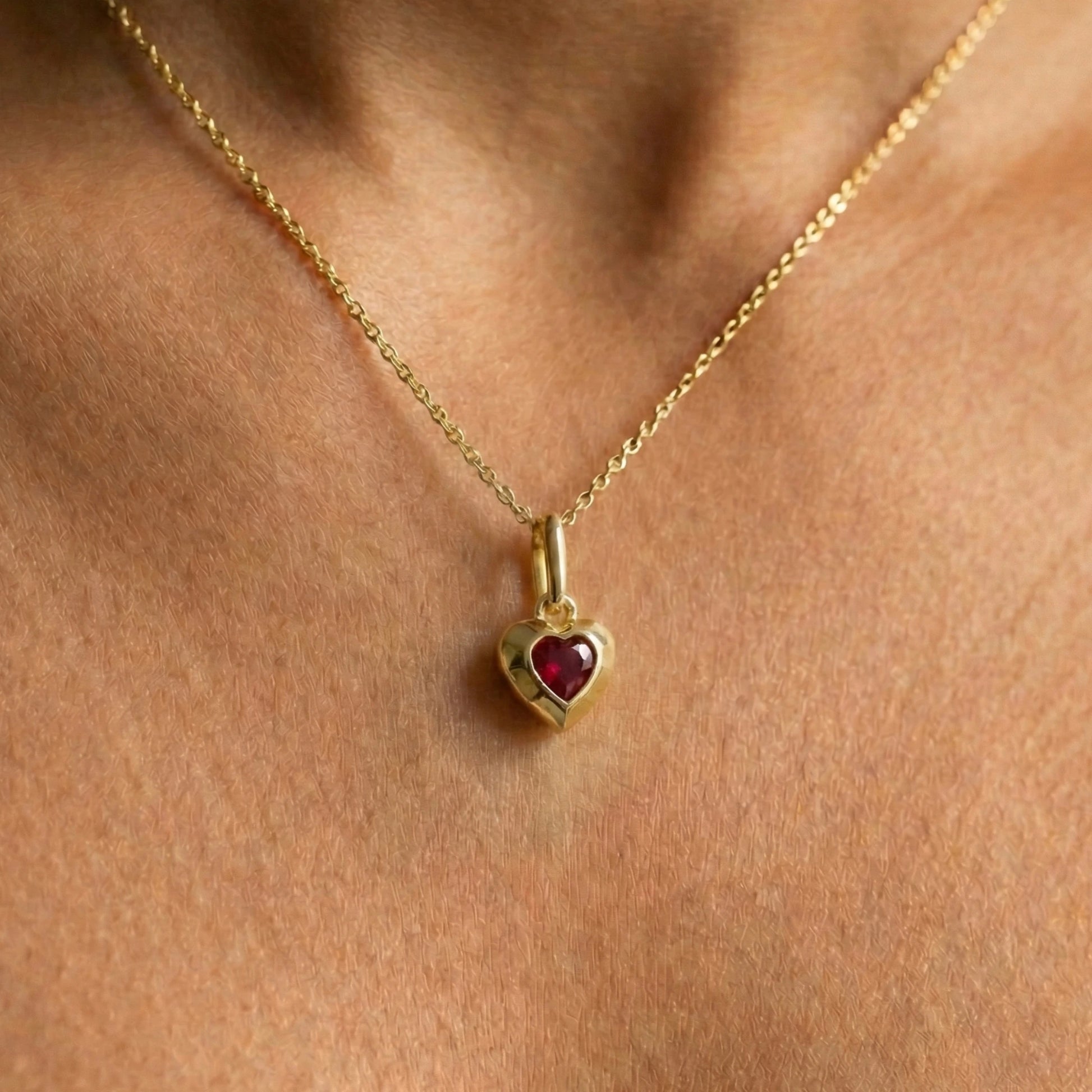 KiraKira Ruby Heart Charm 925 Silver | Gold-Plated Jewellery