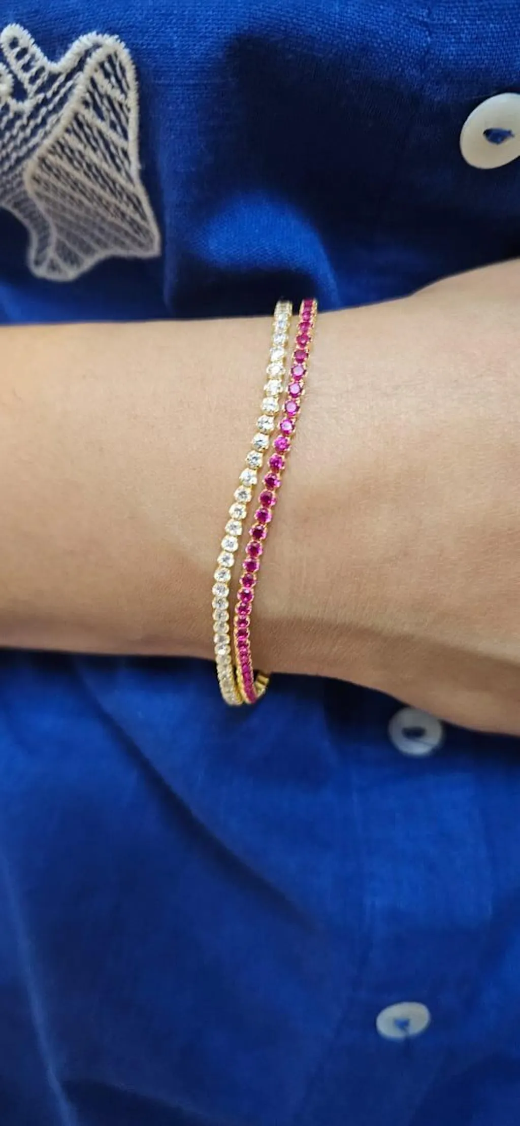 Add sparkle to your look with the KiraKira Tennis Bracelet, crafted in 92.5% sterling silver and available in both 14kt gold plating and rhodium plating. Designed with precision-set CZ stones in five rich colours — Tanzanite, Ruby, Dark Green, White, and Pink — this bracelet offers luxury and versatility in every detail.