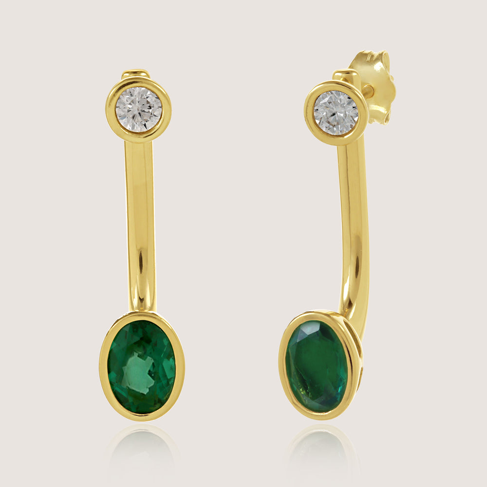 Kirakira Front-Back Earrings – 925 Sterling Silver, 14kt Gold Plated with Emerald Stone | Diwali Jewellery