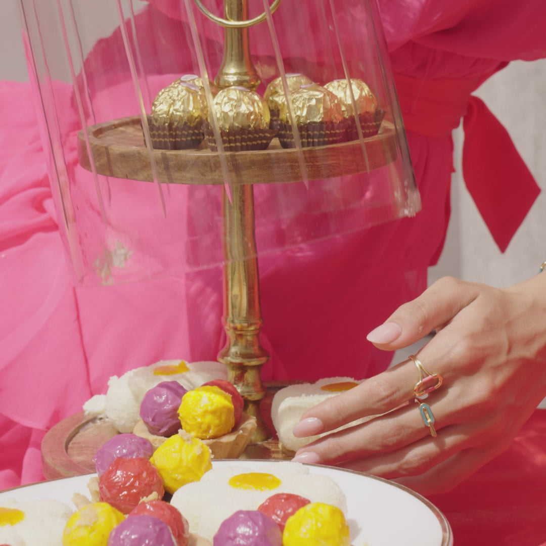 Accented with a vibrant pink enamel finish, this ring is crafted to lift your spirits and your style. Its bold yet versatile design makes it the perfect accessory—whether you're stacking it with other favorites or letting it shine solo. Ideal for both casual days and more polished moments.