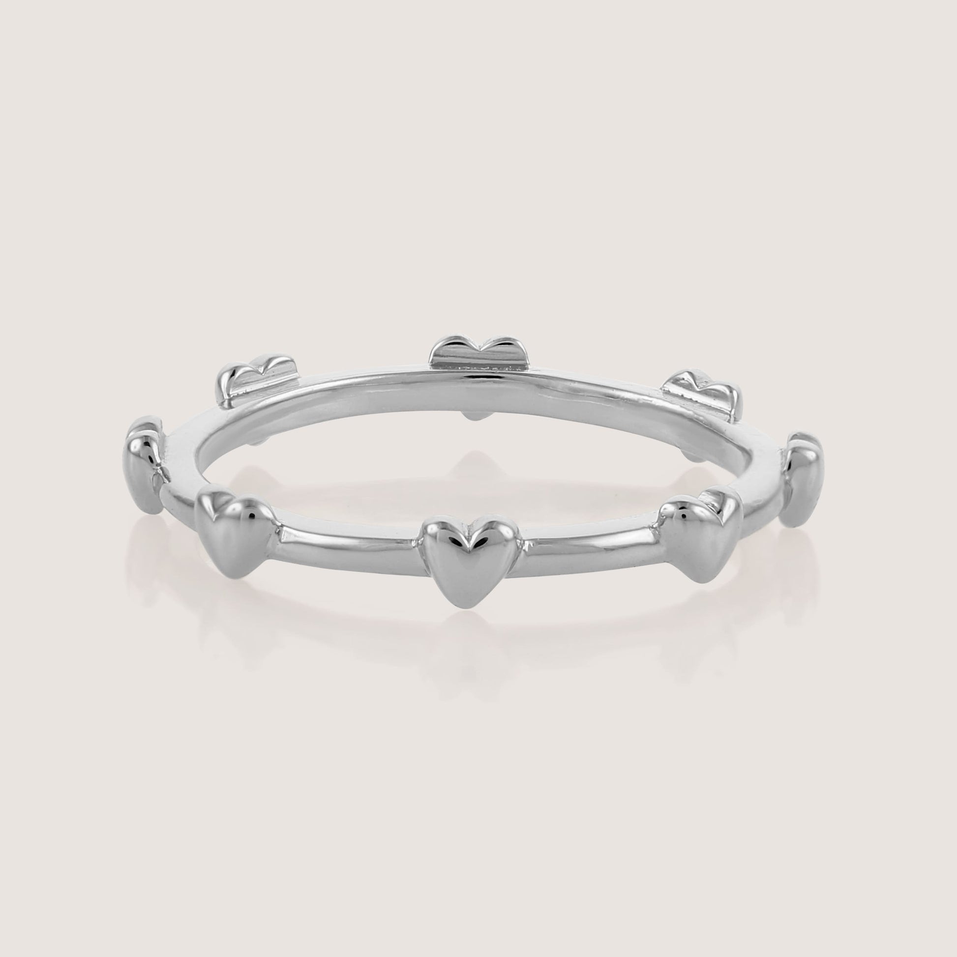 The Multi Heart Ring features a series of delicately crafted heart motifs, symbolising layered love and connection. Made in 925 sterling silver with 14kt gold plating or rhodium plating, it’s designed for effortless everyday elegance.