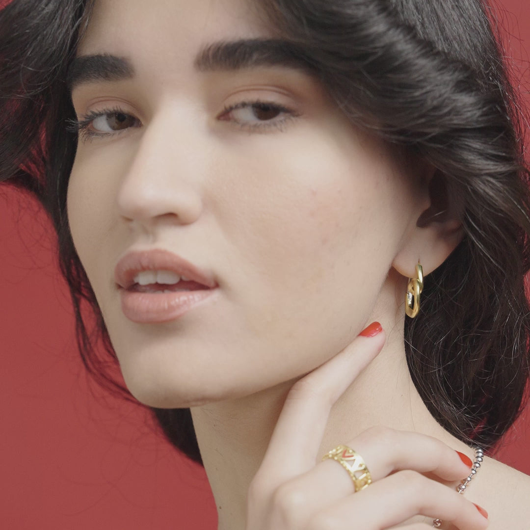 Their unique intertwined design blends modern sophistication with timeless romance, symbolizing the beautiful complexity of love. Whether it's a romantic date night or a casual outing, these earrings are sure to leave a lasting impression. These Twisted Romance Two-Tone Heart Earrings are the perfect blend of elegance and playful charm. Designed with a unique twisted texture, they feature a captivating two-tone finish that effortlessly transitions from warm gold to cool silver, creating a dynamic and eye-catching contrast. The heart-shaped silhouette adds a touch of romance, making them the ideal accessory for adding a sweet yet sophisticated detail to any outfit. Whether you're dressing up for a night out or adding a subtle statement to your everyday look, these earrings bring a touch of love and luxury to any ensemble. Perfect for those who embrace both modern elegance and timeless allure.
