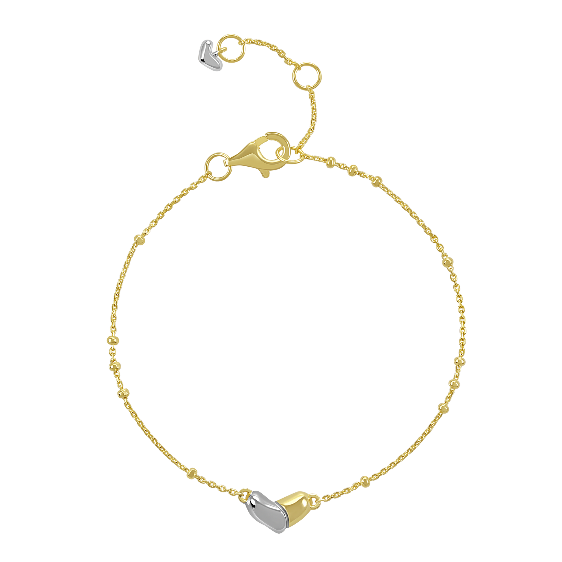The Yugen Organic Heart Bracelet is a blend of modern elegance and playful charm. Crafted in 925 sterling silver with dual-tone gold and rhodium plating, this bracelet features an organic heart design that adds subtle sophistication to any outfit. Lightweight and hypoallergenic, it’s ideal for daily wear or gifting.